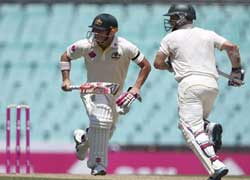 चार मैचों की सीरीज में 2-0 की अजेय बढ़त हासिल कर चुकी मेजबान टीम ने अपने सलामी बल्लेबाजों के उम्दा खेल के कारण पहला सत्र पूरी तरह अपने नाम किया. इस सीरीज में यह रोजर्स का पांचवां अर्धशतक है. वह ब्रिस्बेन और मेलबर्न टेस्ट की दोनों पारियों में अर्धशतक लगा चुके हैं. दूसरी ओर, एडिलेड टेस्ट की दोनों पारियों में शतक लगा चुके वार्नर तीसरी बार अर्धशतक तक पहुंचे हैं. वार्नर ने 63 के निजी योग पर अपने मरहूम साथी फिलिप ह्यूज को याद दिया.
